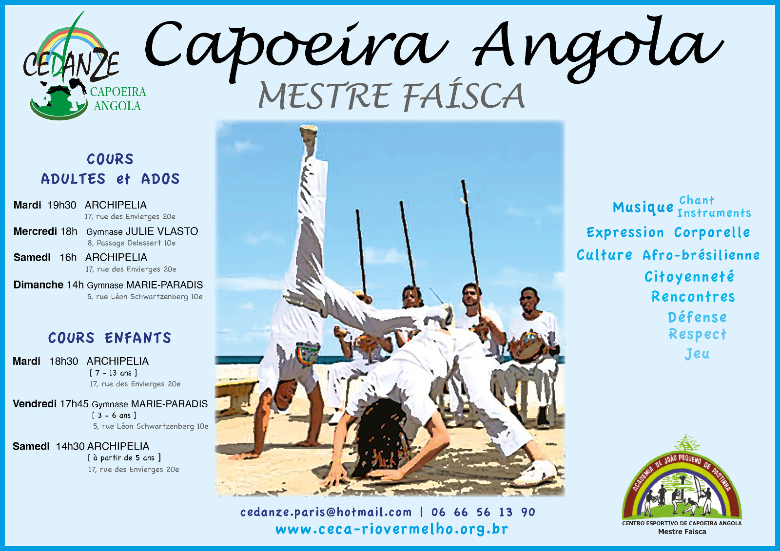 O CEDANZE – Brasil · França · Academia João Pequeno de Pastinha – CECA Rio Vermelho vous informe sur les horaires et lieux de cours avec Mestre Faísca en France, à Paris. Merci à tous de partager cette information!