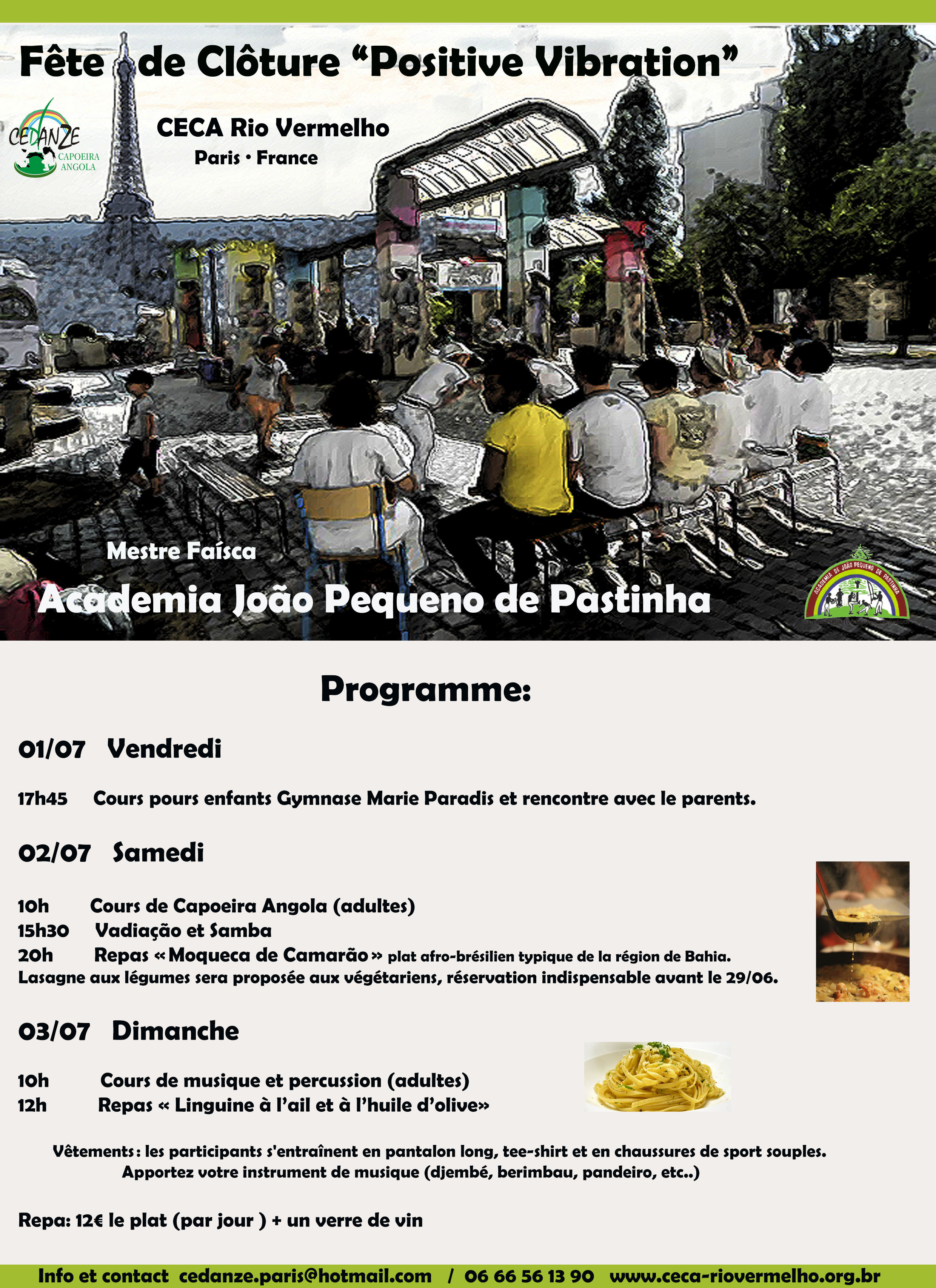 [FR] CEDANZE – Academia João Pequeno de Pastinha · CECA Rio Vermelho em Paris – França sous la direction de Mestre Faísca tient par la présent à remercier tous les présents et absents: Mestres, Contramestres, professores, élèves, familles, institutions partenaires, public, qui ont mis de la bonne énergie dans l’événement “Chora Menino e Vadiação de Capoeira Angola”.
